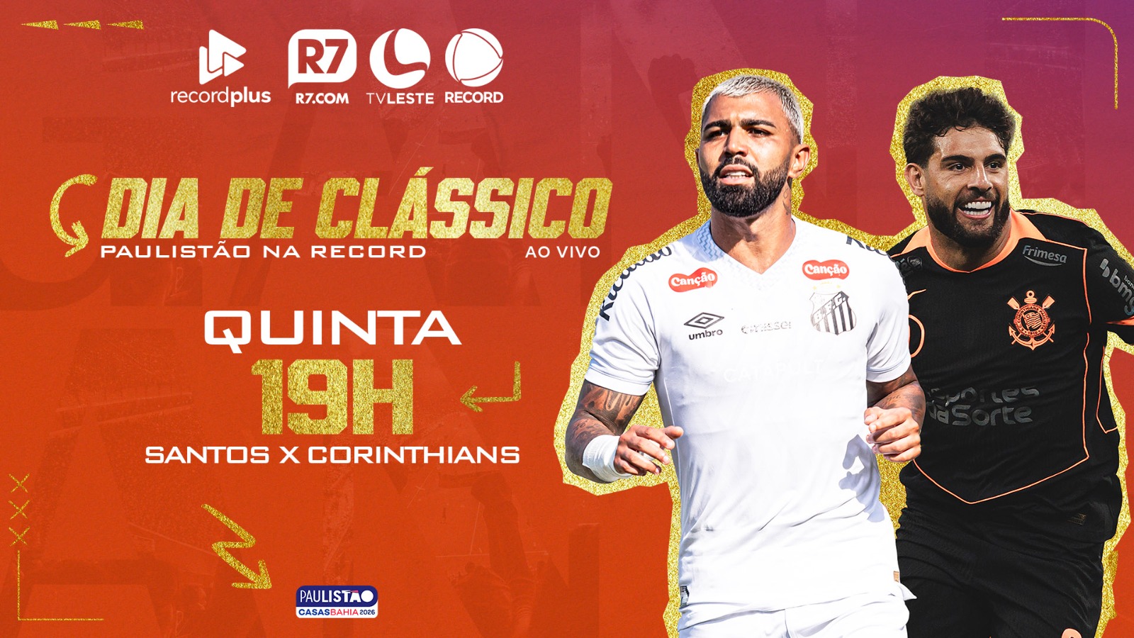 Na quinta-feira (22), às 19h, o Santos enfrenta o Corinthians, na Vila Belmiro, pela 4ª rodada do Campeonato Paulista, também com transmissão da TV Leste, em tv aberta.