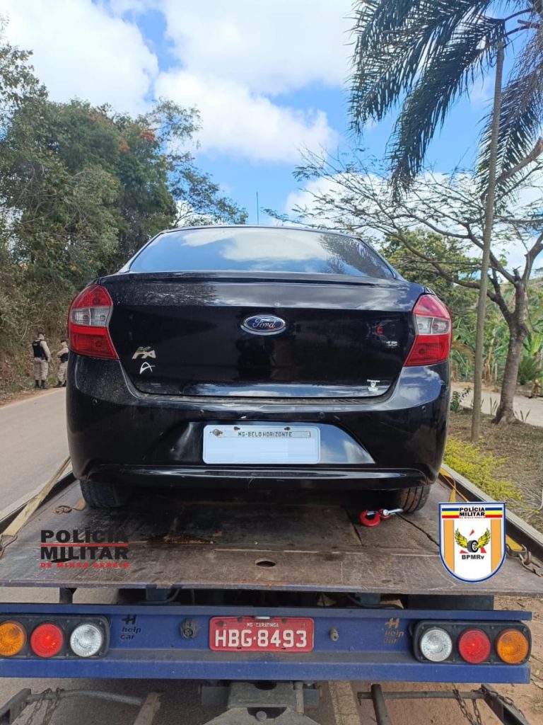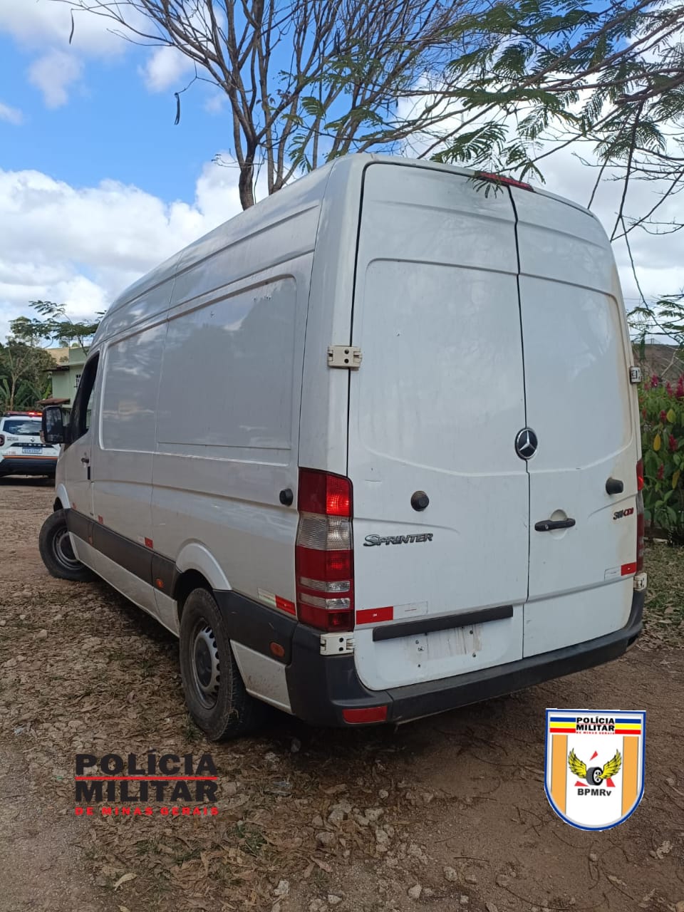 Os militares foram até o local e abordaram o carro de passeio. Nele havia dois homens. Enquanto o condutor da van, que não possuía a placa traseira, fugiu da abordagem. Mas a equipe da Polícia Militar seguiu o veículo e conseguiu encurralá-lo em uma propriedade rural.