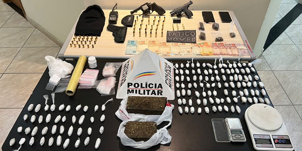 Durante a abordagem ao local, os policiais apreenderam armas, drogas, celulares e munições. Ao todo, os militares apreenderam duas armas de fogo, 65 munições de diferentes calibres, um carregador de pistola, dois coldres, um rádio comunicador, duas balanças de precisão, dois telefones celulares e duas barras de maconha. Além de 120 buchas e outras 5 porções da mesma droga.