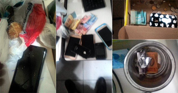 Além da droga e do dinheiro, os policiais também apreenderam seis aparelhos de telefone celular. Os celulares furtados no bairro de Lourdes foram devolvidos à vítima. Veja as imagens dos materiais apreendidos: (Fonte: Comando Geral)