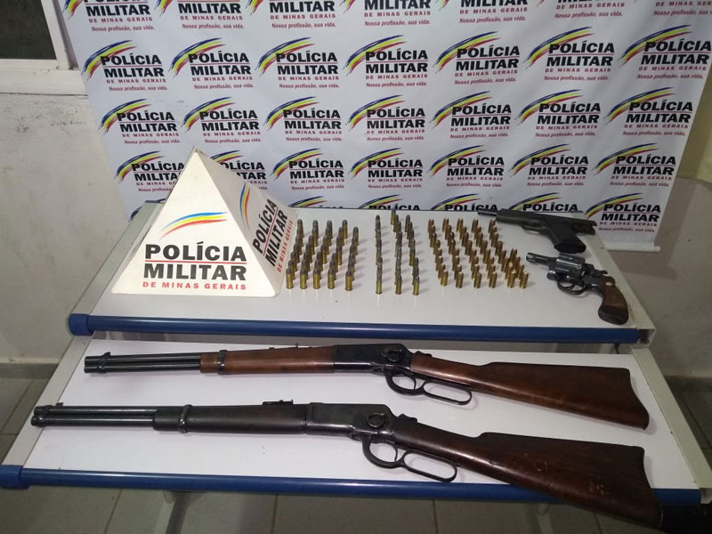 De acordo com a PM, na residência dele, no Sítio Paraíso, na zona rural de Resplendor, os militares localizaram um revólver de calibre 38, uma pistola de calibre 45, 2 espingardas de calibres 44 e 38, além de 103 cartuchos.