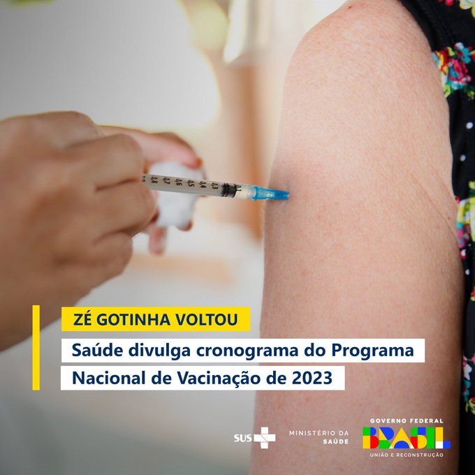 O Ministério da Saúde divulgou esta semana o cronograma para 2023 do Programa Nacional de Vacinação. As ações começam em 27 de fevereiro, com a aplicação de doses de reforço bivalentes contra a covid-19 na população com maior risco de desenvolver formas graves da doença, como idosos acima de 60 anos e pessoas com deficiência.