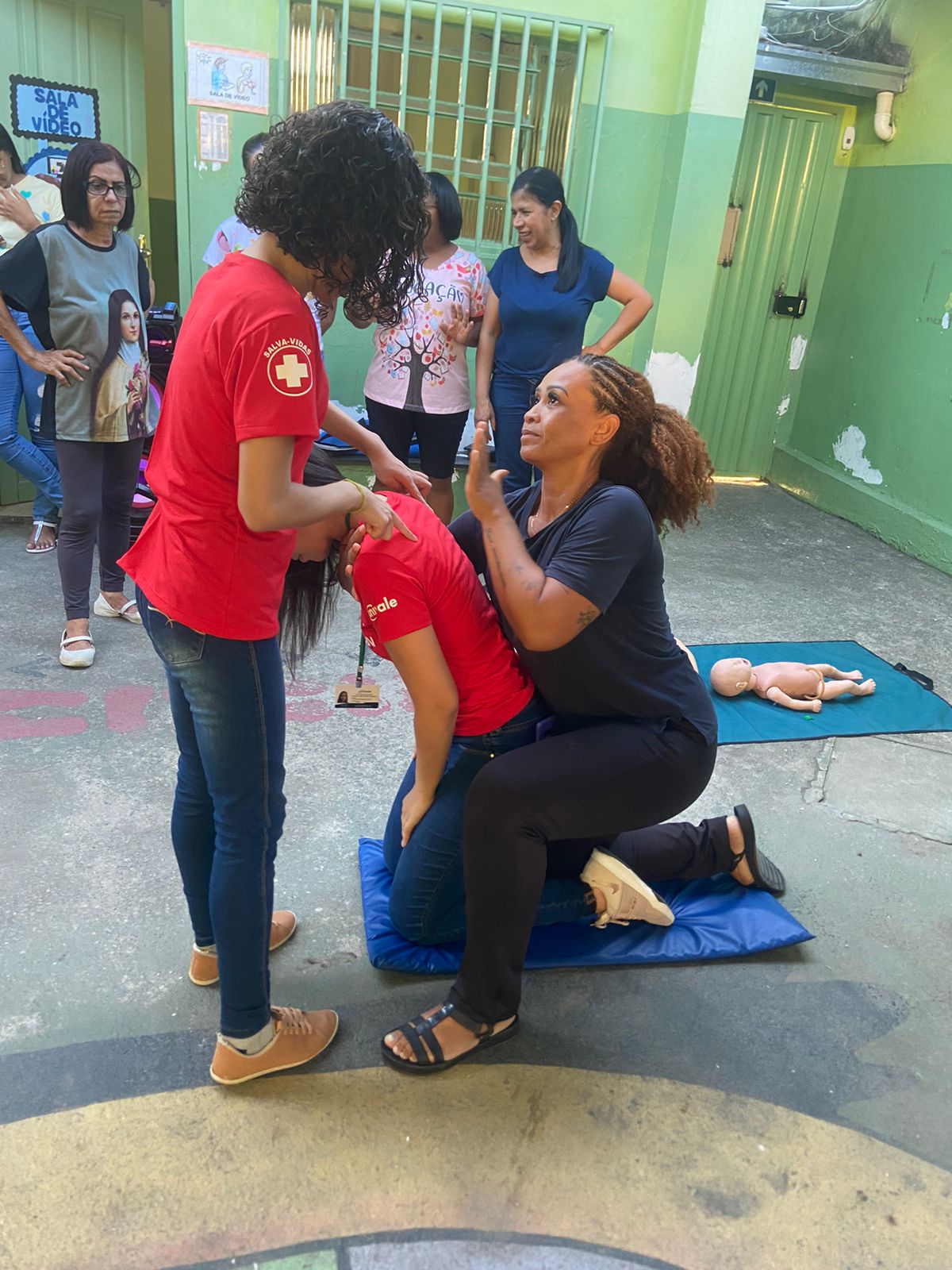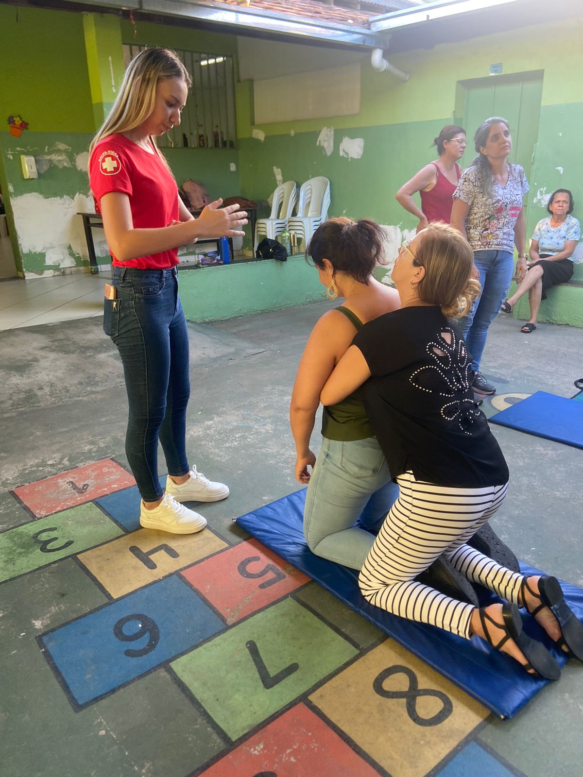 Durante a ação na Escola Valdete Nominato, os colaboradores da instituição participaram de um treinamento abrangente. Conforme a professora Heloíne Leite, a capacitação mesclou teoria e prática, através da simulação realística.