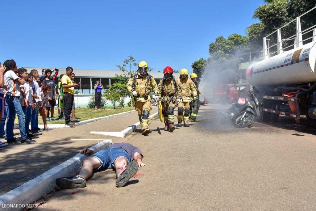 Ao final da ação, os bombeiros militares, agentes de trânsito e Polícia Civil realizaram uma simulação de um acidente com vítima. A simulação envolveu uma moto e um caminhão com material inflamável. Durante a simulação, os parceiros narraram todo o procedimento necessário a ser tomado no caso de ocorrências envolvendo o transporte de materiais perigosos.