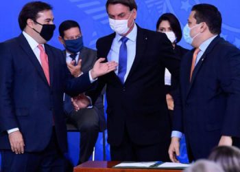 Com participação do presidente do Senado Federal, Davi Alcolumbre, e do presidente da Câmara dos Deputados, Rodrigo Maia, o presidente ...