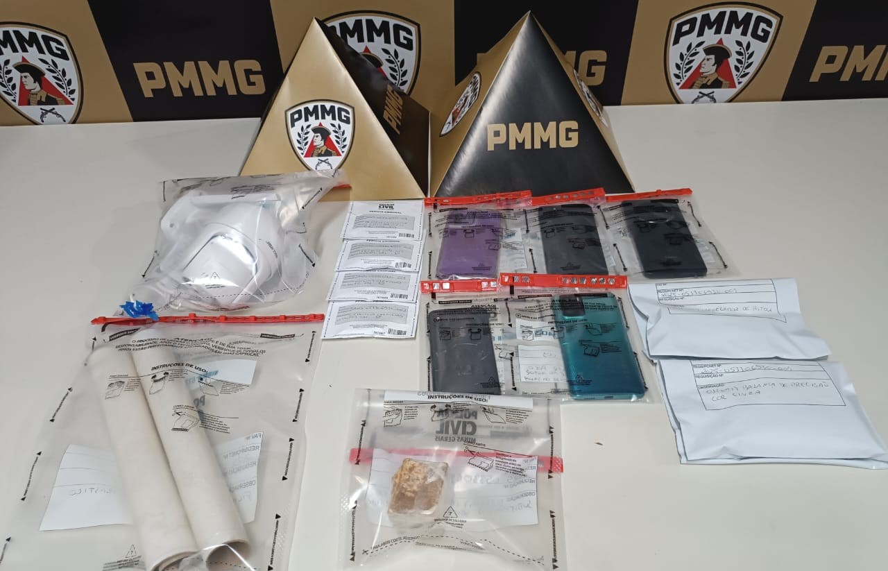 Diante das informações recebidas, os militares seguiram rapidamente para a Rua Lagoa Santa, onde localizaram a residência atribuída ao possível suspeito. No imóvel estavam três homens e uma mulher que, ao perceberem a chegada da Polícia Militar, tentaram fugir pelos fundos, mas foram imediatamente contidos pela equipe. Após revista minuciosa, foram apreendidos: uma porção grande de substância semelhante a crack, um carregador de pistola, cinco munições intactas e seis cartuchos deflagrados calibre .38, uma munição intacta calibre .32, uma balança, dois rolos de plástico filme, uma câmera de videomonitoramento, cinco aparelhos celulares e R$ 288,00 em dinheiro.