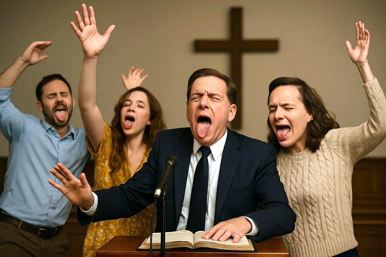 Agora, pense na possibilidade de que uns e outros (escolhidos ou capacitados) possam, de fato, falar em idiomas estranhos. Confesso que seguro um pouco o riso quando vejo a cena de um fiel entrando em transe e começando a emitir sons que lembram uma mistura de sueco bêbado com latim falado de forma invertida. E mesmo que ninguém entenda nada, todo mundo entende tudo… ouvir alguém falando em “línguas estranhas” é algo como ver alguém digitar sua senha bancária com os olhos vendados e garantir que está falando em tupi guarani com sotaque de Nazaré!!! E um “dom” como esse ainda teria outra utilidade… você poderia interromper um discurso, sair gritando “Decantalabashaba Suriamalikonté” e ainda ser aplaudido por isso. Imagina isso numa reunião de trabalho… mas num culto seria bênção! Há quem afirme categoricamente que há interpretação e que essas línguas seriam celestes. Outros afirmam ser mistério.