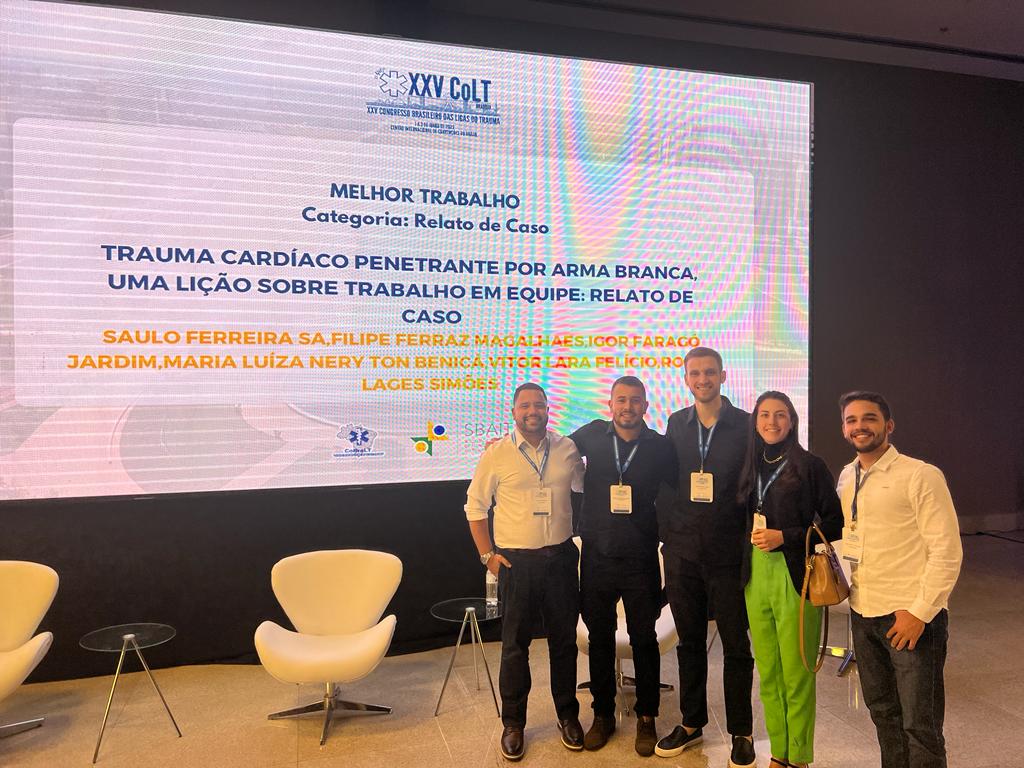 Alunos do curso de Medicina da UNIVALE se destacaram com apresentação de trabalhos durante o 25º Congresso Nacional das Ligas do Trauma. Foram aprovados e apresentados todos os cinco trabalhos submetidos por alunos integrantes da Liga Acadêmica de Cirurgia, Trauma e Emergência de Governador Valadares (Lacite-GV) sendo que um deles, intitulado “Trauma cardíaco penetrante por arma branca, uma lição de trabalho em equipe”, foi escolhido como o melhor na categoria Relato de Caso.