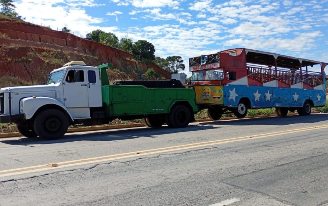 GOVERNADOR VALADARES – Um veículo recreativo conhecido como “Barcão da Alegria”, do tipo trenzinho infantil, foi apreendido na manhã de sábado (5) pela Polícia Militar Rodoviária (PMRv), na BR-259, próximo ao km 134, em Governador Valadares. A abordagem aconteceu após a equipe se deparar com o veículo parado no acostamento, com um dos pneus estourado, em um trecho de curva da rodovia.