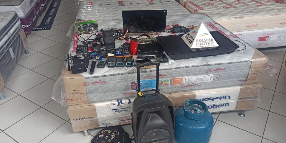 A Polícia Militar recebeu informações de que algumas pessoas entraram em uma loja de colchões para furtar. Então, os militares foram até o local, entraram através de um salão de festas do lado da loja e conseguiram abordar os homens com diversos materiais já separados para serem levados.