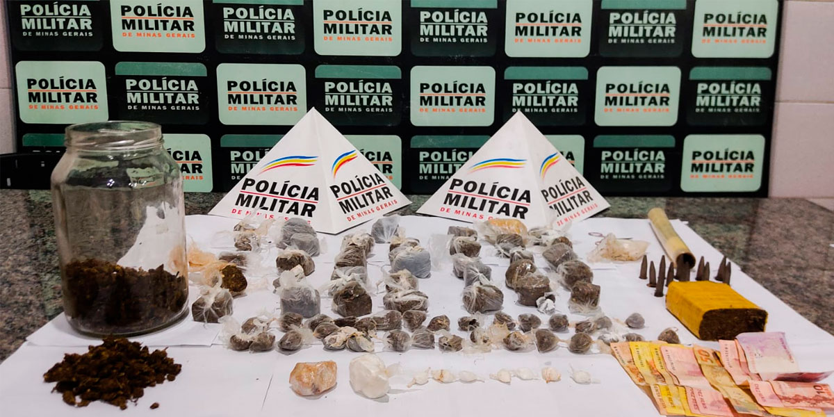 No total, a PM apreendeu meia barra de maconha, uma porção de crack (que pode render várias pedras menores), 35 tabletes de maconha, 33 buchas de maconha, uma porção de cocaína (com várias pedras fracionadas), sete papelotes de cocaína, sacolinhas para embalar droga, um vidro contendo skunk (que pode render centenas de porções) e R$ 205 em dinheiro.