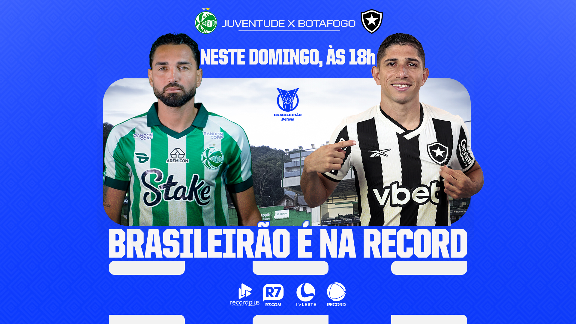 GOVERNADOR VALADARES – A bola vai rolar neste domingo (24), às 18h, na tela da TV Leste RECORD. O Juventude recebe o Botafogo no Estádio Alfredo Jaconi, em Caxias do Sul (RS), pela 21ª rodada do Campeonato Brasileiro da Séria A. A TV Leste transmite as emoções da partida com exclusividade na TV aberta para o Leste e Nordeste de Minas Gerais e a RECORD para todo o Brasil. O confronto entre gaúchos e cariocas também será exibido no R7 e no RecordPlus.