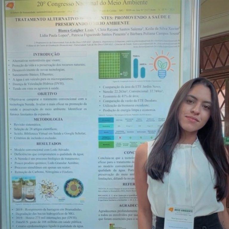“Acredito que a importância de abordar essa temática é para tornar visível a atuação do biomédico nas esferas do saneamento básico. Uma vez que temos o dever de assegurar a saúde da população atrelada à preservação do ambiente em que ela está inserida. Pretendo seguir na carreira da docência. Portanto participar de congressos como esse me permite enriquecer conhecimentos, criar vínculos e expandir meus horizontes. Dessa forma, vejo que somos capazes de construir ricas parcerias para a realização de novas pesquisas, devolvendo conhecimento para a sociedade”, comentou Bianca.