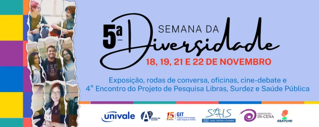 Com o tema “Inclusão, Cultura e Acessibilidade”, a Semana da Diversidade 2024 busca fomentar o respeito às diferenças e a valorização das diversas identidades culturais e comunitárias. A programação, elaborada em parceria com o mestrado em Gestão Integrada do Território (GIT), oferece uma variedade de atividades, como oficinas, rodas de conversa, workshops e ações voltadas para a saúde integral dos participantes.