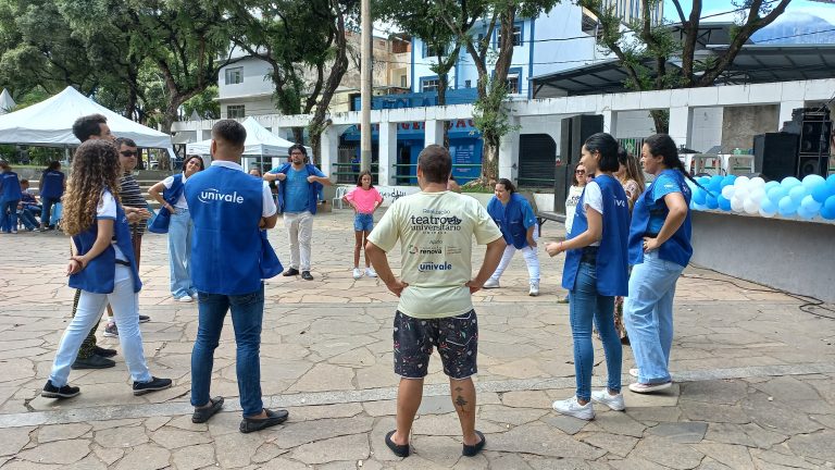 Além disso, o Univoz também contou com a participação do Teatro Universitário da Univale, que ofereceu uma oficina gratuita de teatro a céu aberto para a comunidade presente. O professor Valdicelio Martins, coordenador do Teatro Universitário, explica que a voz é um dos instrumentos necessários para a performance do ator e da atriz, por mais que existam formas de teatro que trabalham apenas com gestos. “Mesmo aqueles que trabalham com o gesto, eles exercitam a voz como um aparelho de respiração que precisa ser condicionado nos exercícios físicos. Esse trabalho que vamos fazer hoje, uma oficina de teatro a céu aberto, trabalha toda a percepção corporal – que é corpo, mente e voz – e as nossas emoções. E como essas emoções refletem quando estamos no meio de outras pessoas com muita interferência, outros barulhos e sons”, explica.