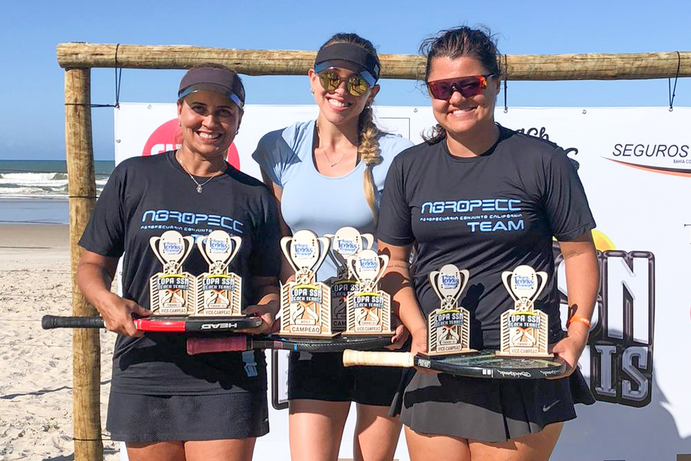 Mais do que saúde, bem-estar e títulos, o esporte é capaz de promover encontros. Em um recomeço após se mudarem de Governador Valadares para a Bahia, o caminho de quatro atletas se cruzou à beira-mar, nas partidas de Beach Tennis (Tênis de Praia). E se sentir em casa praticando o esporte que ama só poderia resultar em sucesso. Três delas, Marcela Soalheiro, Kélvia Zanon e Vanessa Nominato, conquistaram troféus na Copa SSN de Beach Tennis, realizada dos dias 7 a 9 de julho, no clube da Associação Atlética Banco do Brasil (AABB), localizado na Praia do Sul, em Ilhéus (BA).