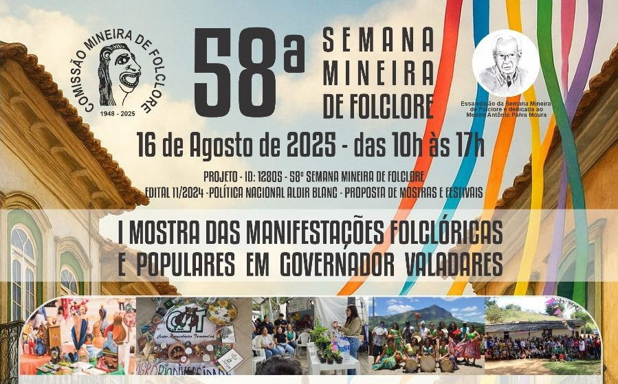 GOVERNADOR VALADARES – No próximo sábado (16) Valadares será palco da I Mostra das Manifestações Folclóricas e Populares, um evento inédito que promete reunir diferentes expressões da cultura tradicional da cidade e região. A programação acontecerá das 10h às 17h no Espaço Cultural Aurita Machado, localizado na área externa da antiga FADIVALE.