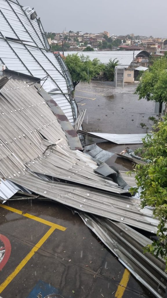 “É de assustar, é de mexer com as emoções da gente. Mas tem que agradecer a Deus porque nada aconteceu com ninguém. A gente estava na casa, achava que era um trovão, mas foi o telhado todo. Dentro da igreja está escorrendo água, porque querendo ou não, no teto tem alguns vazamentos. Lugares de colocar lâmpada estão descendo água. Mas isso a gente consegue consertar”.