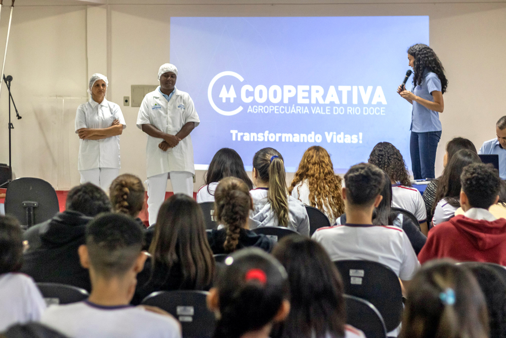 A Cooperativa Agropecuária Vale do Rio Doce recebeu, na última quarta-feira, cerca de 40 jovens para uma visita guiada na unidade arrendada pela instituição. Durante a visita, os jovens conheceram as diversas áreas de trabalho presentes na Cooperativa envolvendo a captação de leite, setor administrativo, área industrial e o Armazém da Cooperativa. Os jovens da Escola Estadual Professora Maria Teixeira da Fonseca, de Tarumirim, e do Polo de Evolução de Medidas Socioeducativas de Governador Valadares (Pemse-GV), foram recepcionados com um café da manhã especial, preparado com os Produtos Ibituruna.